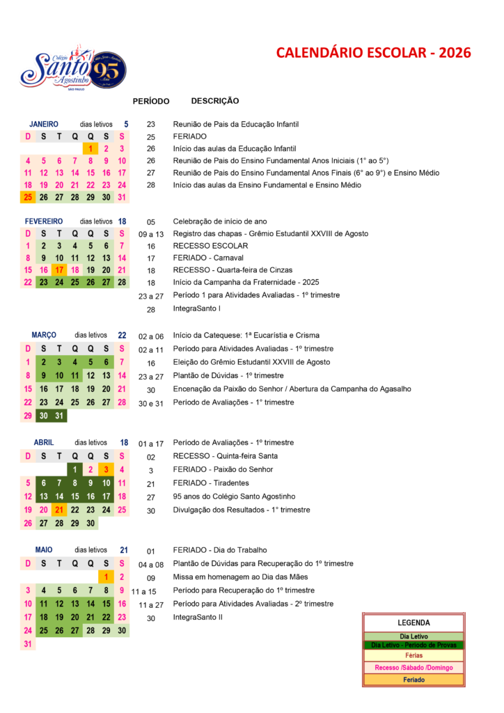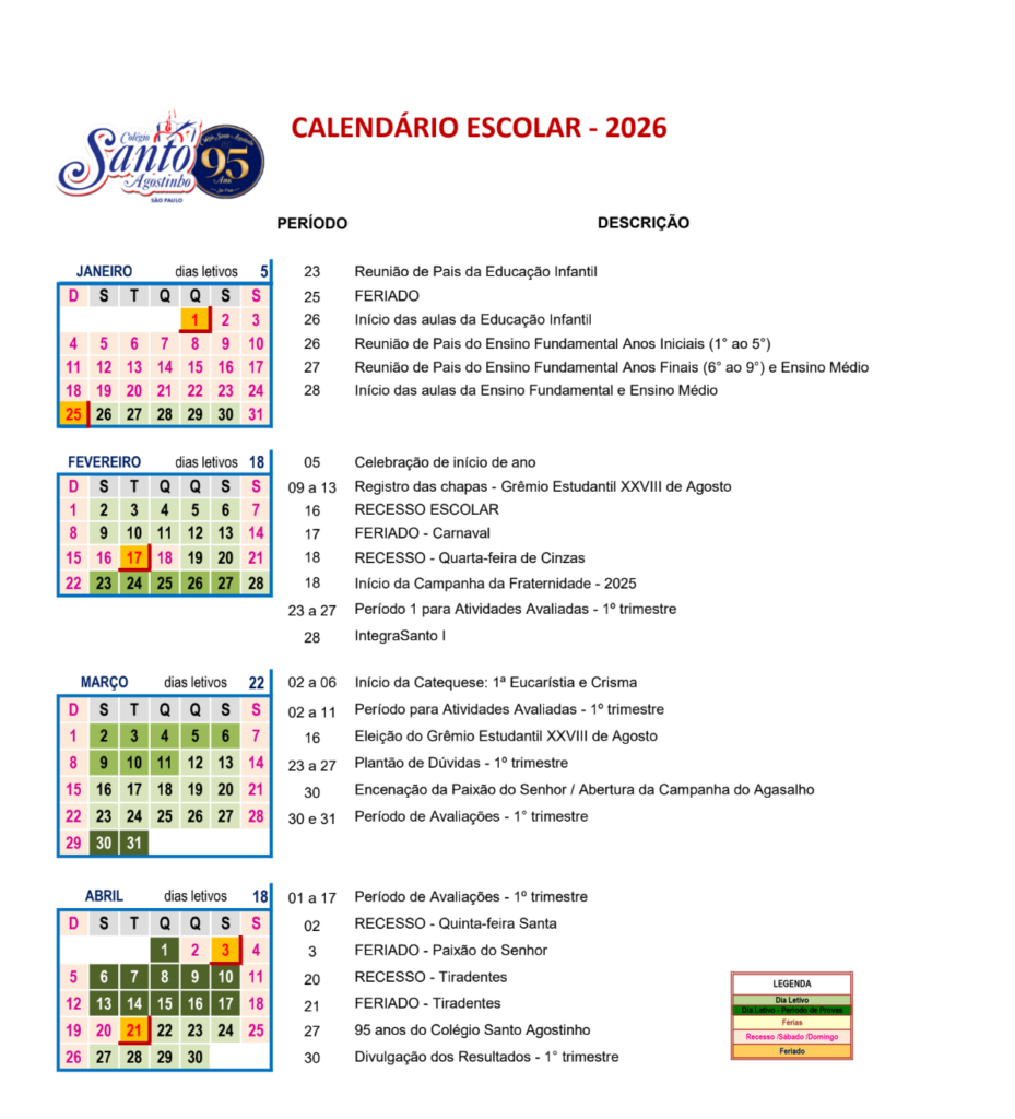 CALENDÁRIO ESCOLAR 2026